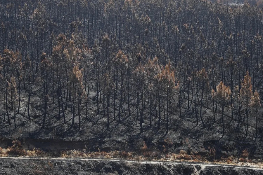 Zona forestal arrasada per les flames al municipi de Quiroga (Lugo). Foto: EFE/Eliseo Trigo
